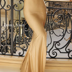 Exclusively crafted in made in USA, this gown embodies luxury with superior quality fabrics and design, ensuring a standout piece for any upscale event.